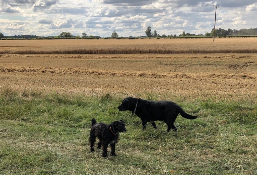 The beloved friends, Piper and Barney, love harvest time as it means the occasional fat juicy rat to chase out of the grain barn.